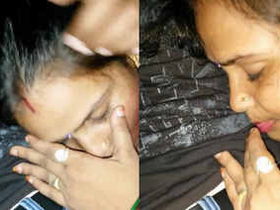 Indian wife and neighbor girl engage in smooching and blowjob