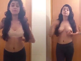 Desi babe with massive natural breasts undressing in the bathroom