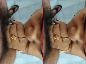 Desi girl gives a blowjob in a seductive manner