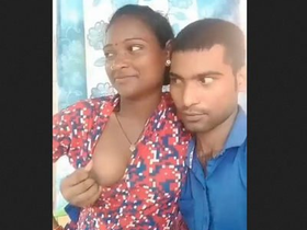 Bhabi with large breasts gets fondled by her lover