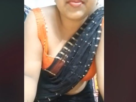 Tamil wife with large breasts teases herself with her fingers