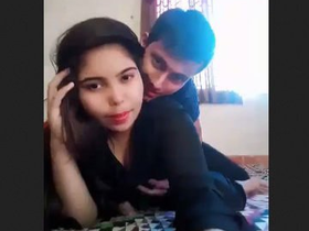 Desi couple's steamy selfie video with topless girl kissing her boyfriend