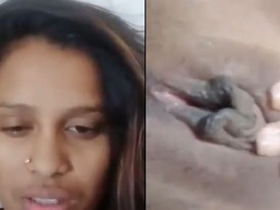 Horny Indian girl pleasures herself by rubbing, licking, and fingering her pussy