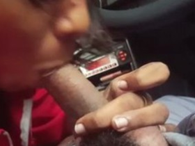 An Indian woman performs oral sex on her partner in a parked vehicle