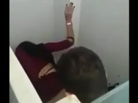 Horny aunty gets intimate with her lover in a train's toilet