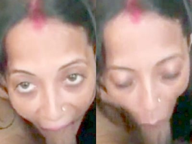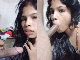 Indian girl gives a blowjob and swallows cum