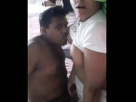 Indian girl gives a blowjob to her sexually aroused boyfriend in an outdoor setting