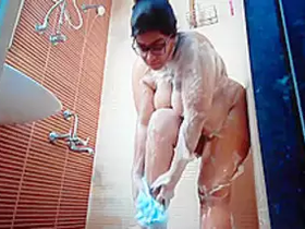 Amateur MILF with big tits and chubby body in shower