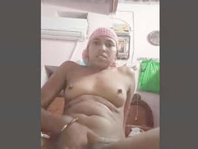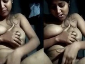 Exclusive video of a cute Indian girl masturbating with her boobs