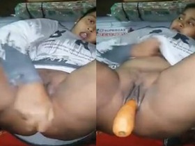 Budi masturbates with brinjal for solo pleasure