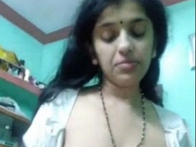 Bhabhi flaunts her large breasts and pleasures herself with her hands