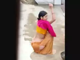 Neighbor secretly records Bhabhi bathing in the open air