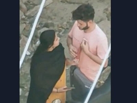 Arab couple's outdoor boob press and smooch session