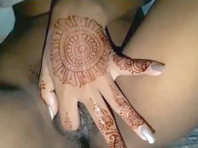 Horny girl pleasures herself with fingers while getting mehendi applied