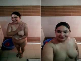 A seductive bhabhi records a sensual bathing video for her partner