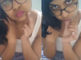Amateur Indian girl pleasures herself with fingers and tongue in selfie video