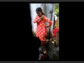 Homemade video of a village girl taking a shower