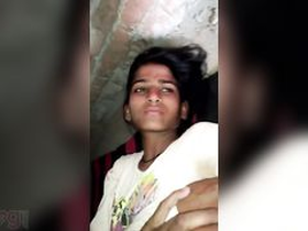Indian teenager fondles her breasts with a seductive gaze